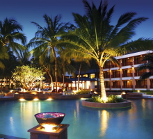 | カロンビーチの広大なガーデン、ラグーン沿いに立ち並ぶ藁葺き屋根の素朴でかわいらしいヴィラが立ち並ぶ。スイス発祥のモーヴェンピックは5階建てのビルディングタイプと前述のヴィラタイプの2種類から滞在スタイルにあわせてお部屋のチョイスが可能。スタイリッシュな内装で快適な滞在をお約束、デラックスオーシャンビュールームはその名の通りガーデン越しに見事なオーシャンビューが期待できる。ペントハウス・プランジプールヴィラは3階建てヴィラの2・3階部分。3階が見晴らしの良いルーフトップにプランジプールが用意されている。