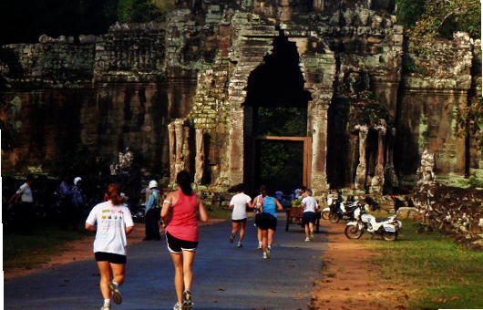 世界遺産アンコール遺跡群の中を走ります!(3kmを除く)毎年各国からたくさんのランナーが参加