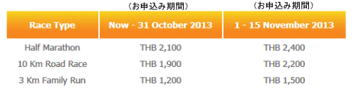 *マラソンエントリー料金表(ご自身にてエントリーの際)