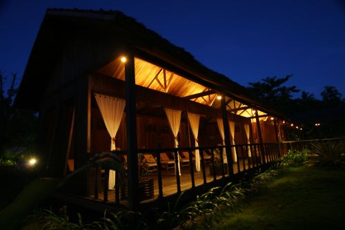 食事はリゾート内のレストランにて3食付、島にはこのレストラン以外には